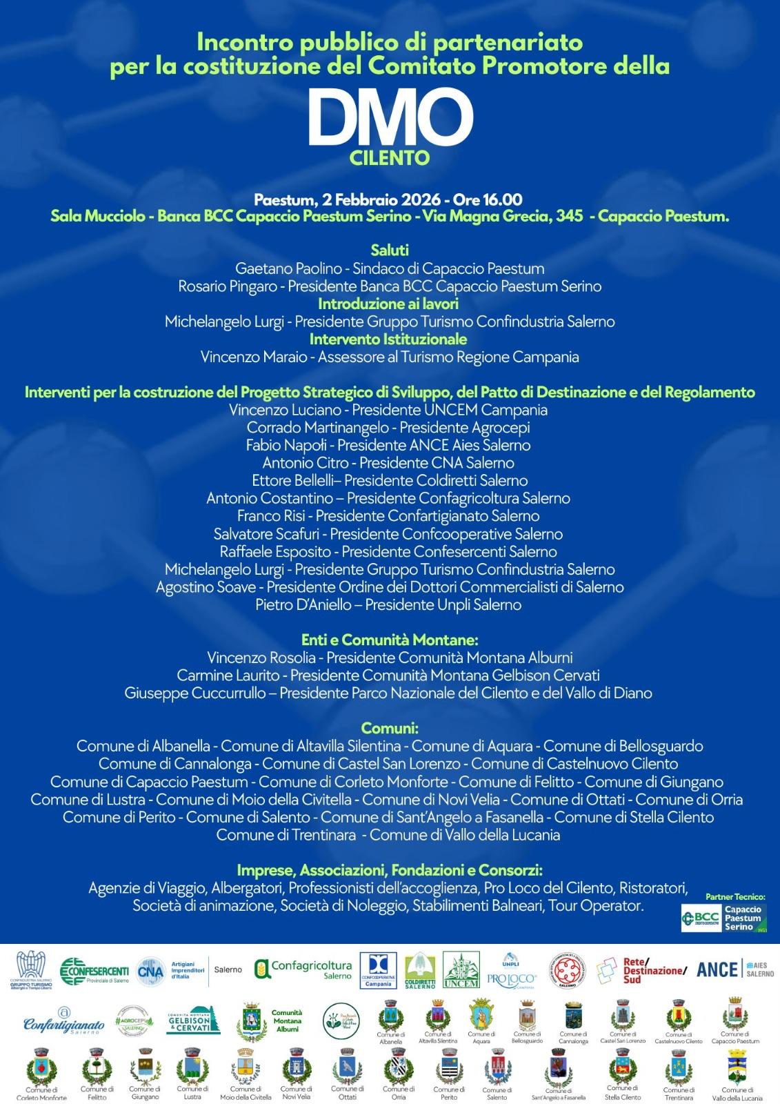 “Convocazione del Tavolo Pubblico per la costituzione del Comitato Promotore della DMO Cilento”