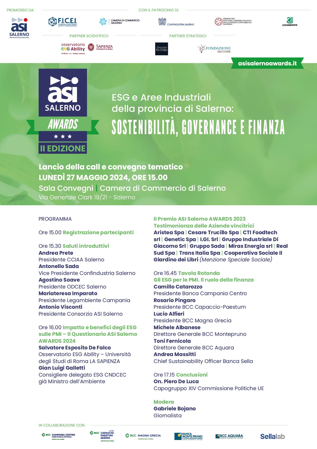 II Edizione Asi Salerno Awards – convegno di lancio “ESG e Aree Industriali della provincia di Salerno: sostenibilità, governance e finanza”