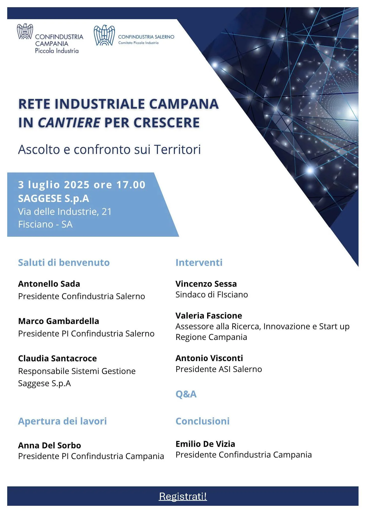 Incontro | RETE INDUSTRIALE CAMPANA IN CANTIERE PER CRESCERE. Ascolto e confronto sui Territori