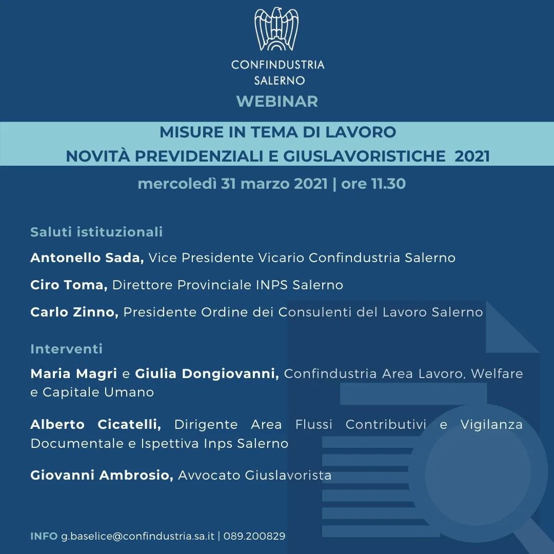 Webinar “Misure in tema di lavoro. Novità previdenziali e giuslavoratoristiche 2021