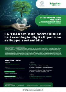 Il prossimo mercoledì 24 novembre, alle ore 15.00, si terrà presso l’Innovation Hub di Schneider Electric – a Casavatore (NA) – il seminario “LA TRANSIZIONE SOSTENIBILE Le tecnologie digitali per uno sviluppo sostenibile”, organizzato dal Campania DIH (Digital Innovation Hub).