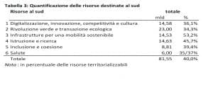 Le risorse per il Mezzogiorno rappresentano il 40% di quelle territorializzabili, sebbene la valutazione dell’impatto macroeconomico del PNRR non faccia emergere un sostanziale aumento della convergenza: da una quota del 22% del PIL nel 2019 del Mezzogiorno sul totale nazionale, nel 2026 la stessa quota salirebbe al 23,4%.