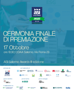 Facciamo seguito alla news n.5 del 12/09/2025, e ricordiamo che il 17 ottobre p.v., alle ore 10:30, presso la sede storica della Camera di Commercio di Salerno (Via Roma, 29), si terrà la cerimonia finale della terza edizione del Premio ASI Salerno Awards, promosso dal Consorzio ASI Salerno con il supporto scientifico del Dipartimento di Scienze Aziendali dell’Università di Salerno e quello tecnico di BGB Business Growth Bureau. (cfr. allegati).